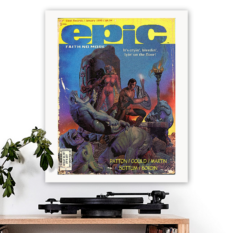 It was clear that any vintage retro pulp paperback or magazine cover for Faith No More's 'Epic' had to be, well, epic. So I turned to Heavy Metal magazine star artist Richard Corben for this wonderful cover for a magazine actually called 'Epic'. See how well that all works out?